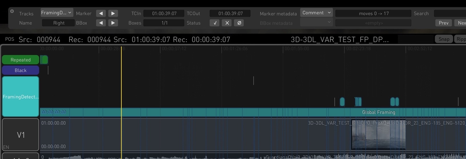 The Auto QC encoder on the Render Page now offers enhanced visual QC by detecting black borders, black frames, and repeated frames. In addition to the existing framing detection track, two new marker tracks are generated when the BLACK FRM and REPEAT FRM settings are enabled in the Configuration Pane for the Auto QC encoder, helping users pinpoint black or repeated frames directly in the timeline.