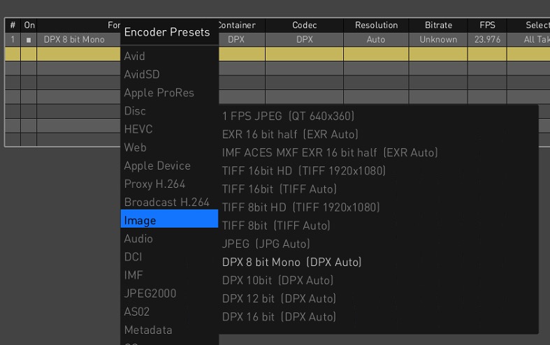 Transkoder now offers a dedicated DPX 8-bit Mono encoder in the Image encoder presets on the Render Page, enabling export of black-and-white footage as single-channel DPX files. This is especially useful for workflows that scan black-and-white film using a single color channel, optimizing storage while maintaining image quality. The encoder ensures smooth integration with existing DPX processing pipelines.