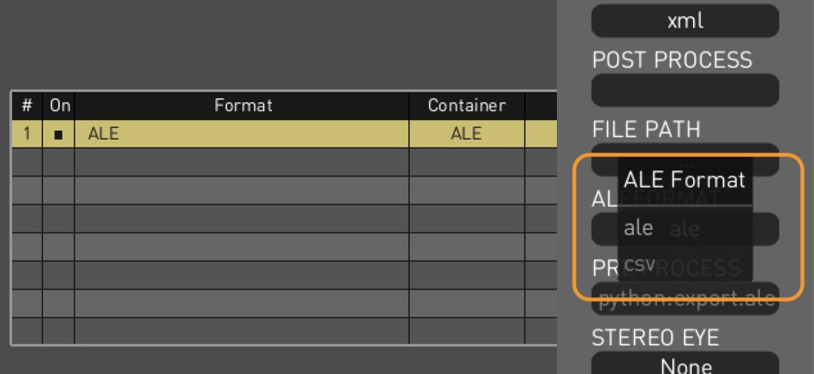 Transkoder now supports exporting dailies metadata in CSV format alongside ALE, directly from the ALE encoder in the Metadata presets, eliminating the need for manual conversions. A new ALE FORMAT option in the Configuration Pane lets users choose between ALE or CSV, with the file extension updating accordingly.